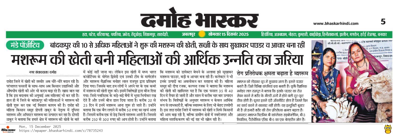 Bandakpur की महिलाएँ अब मशरूम खेती के ज़रिए आत्मनिर्भरता की मिसाल पेश कर रही हैं। 10 से अधिक महिलाएँ इस पहल से जुड़कर मशरूम को सब्ज़ी के साथ‑साथ सुखाकर...